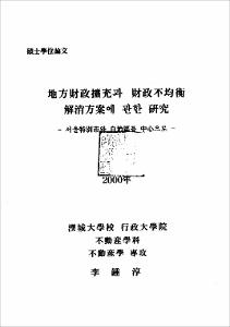 Three major basic elements in the local autonomy is said to be the right of independent legislation, independent organization, and independent finance. Among these elements, the right of independent legislation and organization seem to be established to some degree, but the right of independent finance has been suffering from high financial dependence on upper governments and great financial differentials between local governments, etc. Moreover, since democratic local autonomy has revived, financial demand have sharply increased due to increased needs for social welfare and increased cost requirements for the well-balanced development among local governments, etc. However, tax system has not been reformed adequately, so financial differentials and lack of financial resources have been getting worse. Thus the plan to solve the problems is needed urgently.