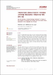 = Are the Archives a Cultural Heritage Institution?: A Study on the Problems of Excluding the Archives from the Orphan Works Exemption in the Copyright Act of Korea