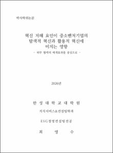- 혁신저해요인, 시장저해요인, 자금저해요인, 외부협력, 탐색적 혁신, 활용적 혁신, 양손잡이 전략, 중소벤처기업