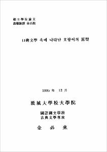- 본 논문은 說話, 民謠, 俗談, 民俗 등 口碑文學 제반에 걸쳐서 나타난 호랑이의 原型(Archetype)과 그 原型을 토대로 표출된 한국인의 의식과 思想의 고찰에 주된 목적을 두었다. 호랑이는 한국인의 의식 속에서 긍정적이기 보다는 부정적인 原型으로 자리잡았다라고 볼 수 있는데, 우선 說話 속 호랑이의 모습을 살펴보면 開國神話인 檀君神話에서부터 호랑이는 조급과 패배라는 부정적인 이미지로 나온다. 虎景과 甄萱神話에서는 호랑이가 긍정적인 이미지로 나오지만, 이 두 神話는 이미 신화의 시대가 소멸된 이후에 나온 조작된 신화이므로 한국인의 호랑이에 대한 原觀念과는 거리가 있는 이미지라고 할 수 있다. 傳說에서는 人物英雄, 虎患, 報恩」 加護, 遁甲傳說 등으로 유형을 분류한 후 호랑이의 原型을 살펴보았는데, 孝子와 烈女 등을 보호하고 도와주는 가호담 속에 나오는 호랑이를 제외하고는 모두 긍정적인 이미지의 호랑이로 볼 수가 없었으므로 傳說에서도 역시 호랑이의 원형은 부정적인 면이 강하다고 할 수 있다. 이러한 호랑이 원형의 부정적인 인식은 유사한 내용의 中國傳說들과 비교를 통해서 볼 때에도 별다른 차이점을 발견할 수 없다는 점에서 나름대로 타당성을 갖춘 논리라고 생각된다. 民譚 쪽으로 들어 와서는 호랑이의 잔인, 엉큼, 교활 등등의 부정적인 이미지가 더욱 심화된다고 할 수 있는데, 民譚은 설화 쟝르 중에서 대상의 원형을 가장 잘 간직한 채 전승되는 쟝르이므로, 이는 호랑이에 대한 한국인의 원형이 부정적이라는 것을 단적으로 증명하는 바이라 하겠다. 호랑이는 비단 설화 뿐만이 아니라 다른 구비문학 쟝르인 민요, 속담, 무속 등에서 나타난 바를 살펴보더라도 역시 부정적인 면이 강한 채 전승되고 있다. 이러한 호랑이의 부정적인 원형을 토대로 표출된 한국인의 의식과 思想을 論究한 결과 어느 쟝르, 어느 유형을 막론하고 가장 강하게 드러난 사상은 人本主義 사상이라고 할 수 있다. 이는 단군신화에서부터 민담에 이르기까지 결코 호랑이가 인간보다 우위에 서있지 않다는 점에서 그렇고, 실제로 한반도 내에서 호랑이를 神으로 모셨다는 예가 극히 드물다는 점에서도 그렇다. 또한 아무리 타당한 동기가 있다 할지라도 인간과 동물의 경계를 허물어 버리고는 비극적인 결말을 맺을 수 밖에 없다는 점을 볼 때에도 강력한 인본사상을 엿볼 수 있다. 그리고 佛敎가 융성하던 시대에는 불교적 知恩報恩의 사상이 강했음을 보은담을 통해서 알 수 있고, 儒敎가 융성하던 시대에는 유교적 孝烈思想이 강하게 드러났음을 볼 수 있다. 획일적이다시피 호랑이를 부정적으로 묘사한 민담을 통해서는, 불의롭고 강한 世界와의 투쟁에서 정의롭고 약한 自我가 결국은 승리를 한다는 점에서 한국인의 강인하고 끈질긴 民衆思想을 볼 수 있다. 끝으로 설화를 통한 호랑이의 時代的 변천상은 신화시대의 부정적인 모습을 거쳐, 시대적 상황과 조류에 간섭을 많이 받는 전설의 시대로 오면서 약간의 긍정적인 모습으로 변형이 가해진 뒤, 다시 민담의 시대로 접어들면서 부정적인 원형이 되살아났다고 할 수 있다.|This thesis was written for the tiger's archetype and Korean ideology in a fable, folk song, proverb, and folk customs. Tiger described a badly in Korean consciousness. First, tiger was hasty and a defeat in National Foundation Myth(Tangoon myth). Tiger was good image on the Hokyung and Kyunhwun myth, but these myths had already left after that time subsequent myths. So these have nothing to do with Korean archtype. Legends were classified into five(the tale of hero, the tale of ravages by tiger, the tale of requital by tiger, the tale of protect by tiger, and the tale of take the form) large groups. Therefore tigers were come out a badly in legends, but with the exception of protect with a dutiful sons and an exemplary women's tale. Like this so badly images are the same as compared with to Chinese fables. Folktale has get in tiger's outrage, stupidity, and cunning badly archetype were more and more deepend because folktale is the most store away archetype of things among fable genres. Since it is so, this fact proved Korean badly recognition about tiger. Tigers also badly appeared folk song, proverb, and folk customs. Study the basis of tiger's badly archetype therefore most prominent ideology was humanism. This things proved in fact don't attended lord in Korea peninsula, and however no matter how a right motive don't admission human change into animal. And others, Buddhism was in full flourish at time a Buddhist idea and Confucianism grow in prosperity at time a Confucian idea. Tiger uniformly badly described folktale after all peoples won the war in opposition world. This point finded Korean's being strong democratism. Tiger's an age changes badly images in myth age and folktale age, but some transformation (good image) appeared in legend age.