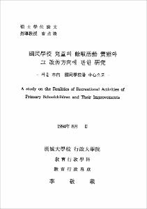 國民學校 兒童의 餘暇活動 實態와 그 改善方向에 관한 硏究