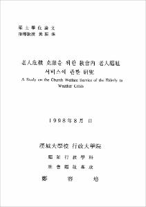 In order to achieve the above aims, first the concept, its significance, and biblical understanding of the elderly crisis was looked into theoretically to state the different types and contents; then as a method to enhance readaptability to the community, ease solidarity, and increase the satisfaction of living for the elderly, planning a church welfare was suggested; and lastly in order to solve the ever increasing problems of the elderly, the church welfare service was suggested.