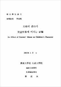 It sampled 200 subjects from 4 schools located at Euijeongbu, Kyunggi-do during the period of Nov. 6 and 9, 2000. It used SPSS/PC program for data analysis, performed credibility analysis for the questionnaire. And it performed T-test to examine the abuse types for children, and correlation analysis to examine the relationship between abuse types and character types.