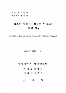 - This study investigates the actual condition of juveniles voluntary support and the facts that effect on a degree of satisfaction through a demonstrative way, it assumes that a participation motive, a suitable duty, a relationship with a person in charge, a voluntary support training have an influence on a degree of satisfaction and those facts are verified to present the schemes to improve juveniles' satisfaction when they do a public service.