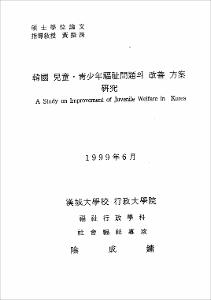 韓國 兒童.靑少年福祉問題의 改善 方案 硏究