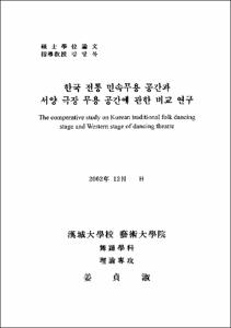 이러한 연구는, 각기 다른 무대공간의 이해, 관객과의 관계의 인식, 그리고 다양해지는 무용작품으로 발전되어 대중에게 가까이 다가설 수 있는 지름길이 되고자 함이다.|In this thesis, assuming that Korean traditional dancing stage and the stage of Western theatre have an effect on the character of each dance, I can understand that dancing stage affected the character of dance through the comparative study on the characters of two stages.